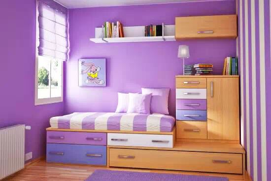 东西朝向的房间在夏天的时候往往会被太阳烤得火热,使用紫色既能够减低热度,又能够保持暖意,也是一种不错的墙面颜色。